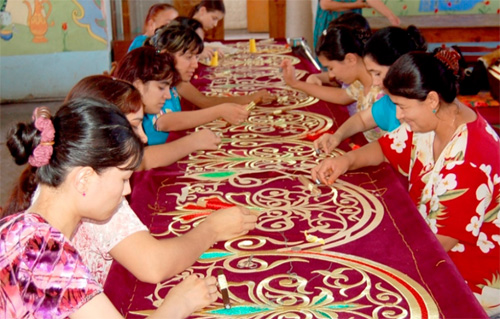 Еще один дворец получил качественное творение искусных мастеров золотошвейной фабрики г. Бухары ООО «Заркон». На этот раз золотошвейные портьеры обрел государственный драматический театр г. Каттакургана. Над занавесами трудились 60 мастериц золотошвейного дела по эскизам М. Хаетовой и Н. Кобиловой. Это уже не первые огромные портьеры для сцен. Самые большие занавесы длиной в 22 метра и высотой в 10 метров висят в концертном зале города Самарканда.